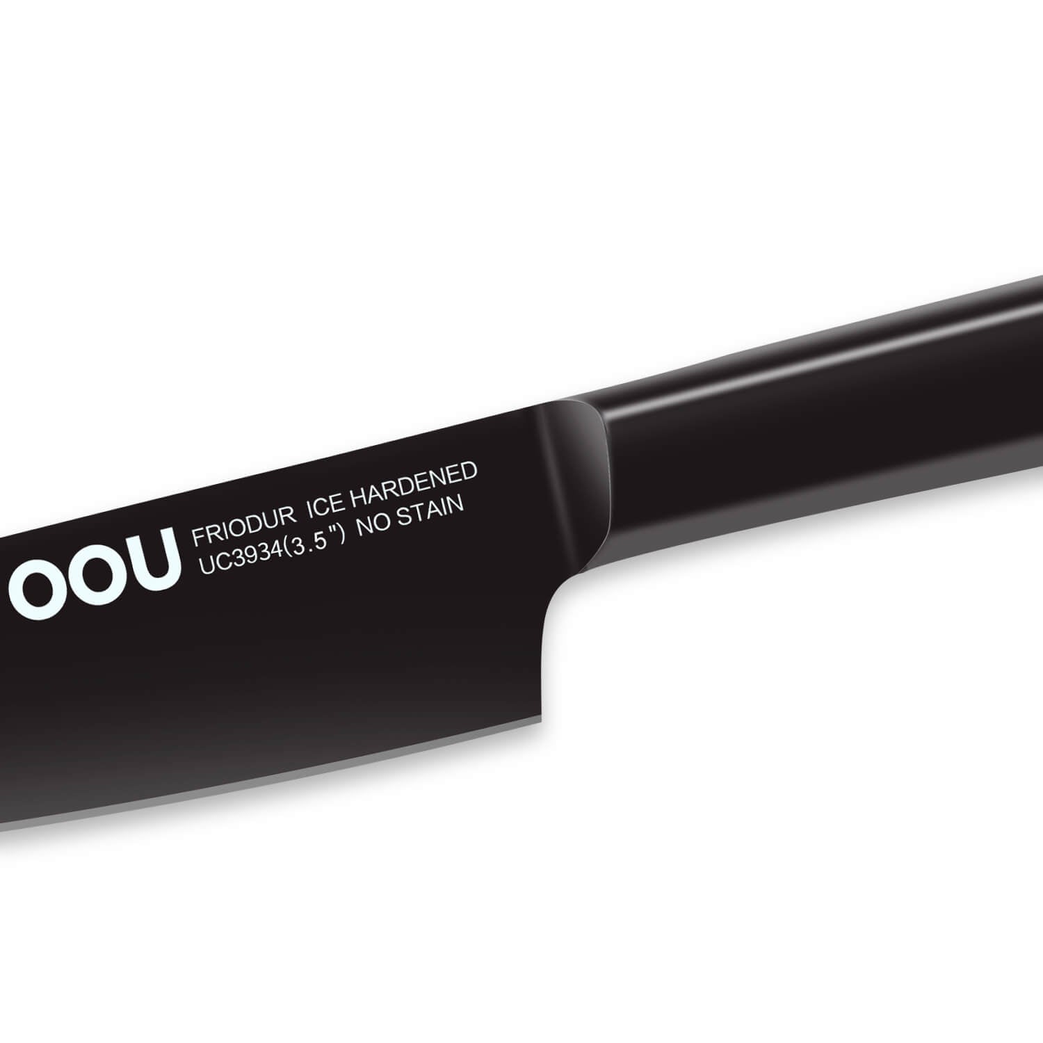The patented BO oxide surface creates a fantastic black oxide layer on the OOU knife block set that is truly rust-proof. Unlike other black knives on the market, which may not be healthy and the black coating may fall off. All OOU knives are harmless to health