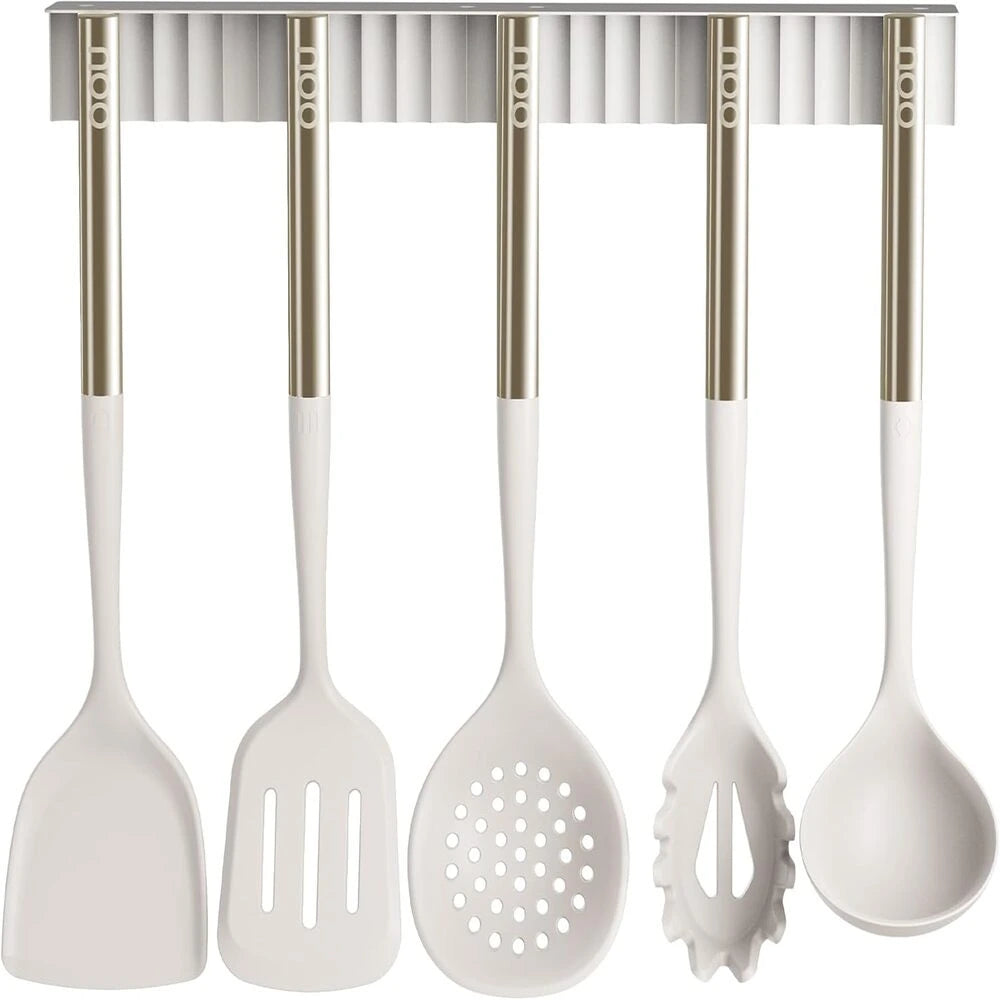 magnetic stand, features white silicone heads and gold stainless steel handles. The elegant design makes it a perfect gift for weddings, holidays, or housewarming parties.